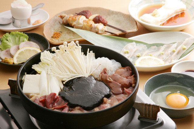 「龍馬コース」と銘打って龍馬に縁のある数々の料理を堪能することができるコースがオススメです。軍鶏鍋は、単品の場合は2人前から注文することができます。