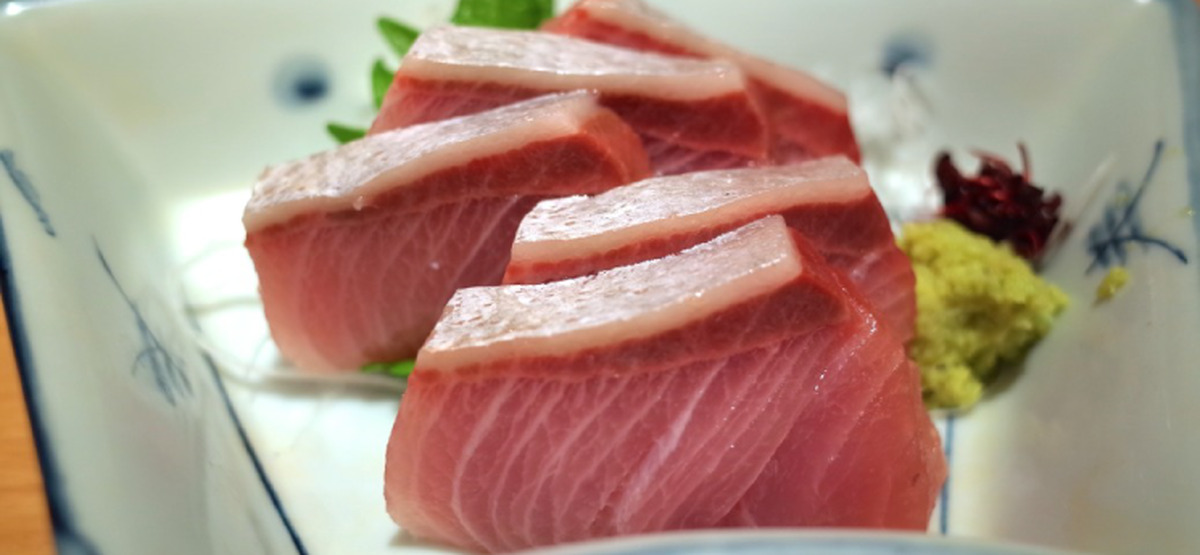 かつお、325円。これは大迫力!1切れが厚くて大きく食べごたえあります。ツルンとした口当たり、そして口いっぱいに広がる旨味が最高です。