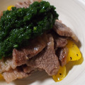 ホッピーに合わせて、今回は少しチープな牛肉を塩コショウの下味で焼いたら、上に出来たてのニラソースを乗せるだけ!