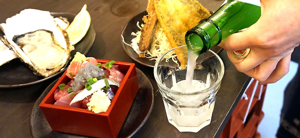 安い!でもただ安いだけではなくて、日本酒に詳しい人が選ぶいま注目の個性派日本酒が揃い、おつまみの魚も築地の提携魚卸から直送することで新鮮で盛りの良さも実現しているお店です。