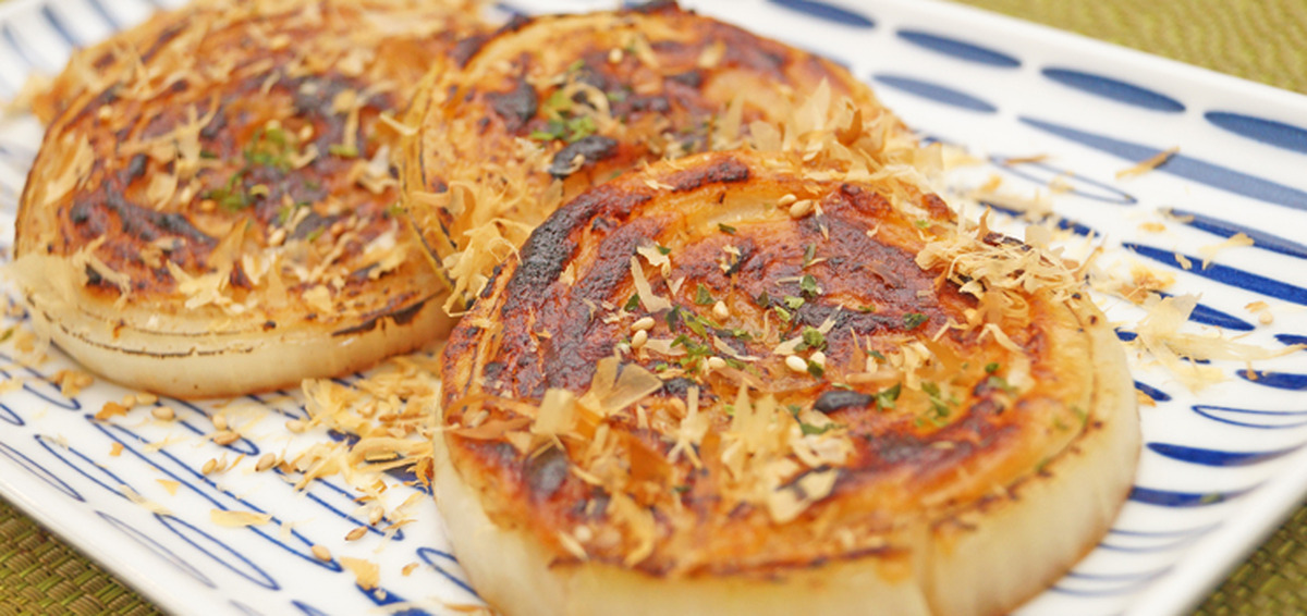 焼いて甘みの増したタマネギに、ピリ辛の味噌が最高のコンビネーション!お酒もご飯もすすんじゃう最高の一品です。