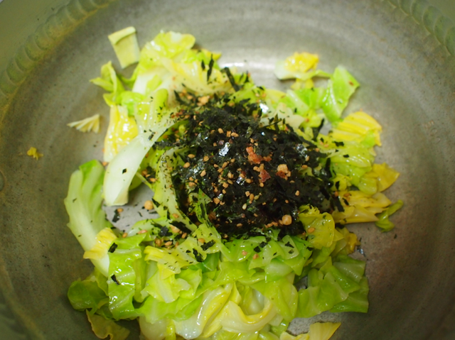 春キャベツの綺麗なみどり色が見えるようにうすはりにモリモリ盛りました。