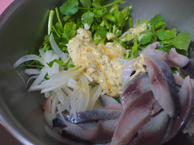 クレソンの葉の部分は盛り付け用に取っておいて、最後上にトッピングするときれいでしょうか。