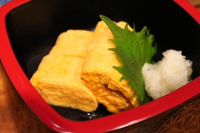正解は、だし巻玉子!漢方薬としての効果もあるパプリカを食べて育ったという拘りの鶏から生まれた卵を使った濃厚でお出汁溢れるだし巻き卵に感激。