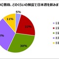 今回の参加者に『日本酒を飲む頻度』を聞くと、毎週飲んでいると答えた人が57%と約6割近くになりました。