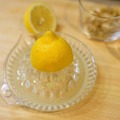 ②レモンを半分にカットし、1/2個分のレモン汁を絞っていきます。