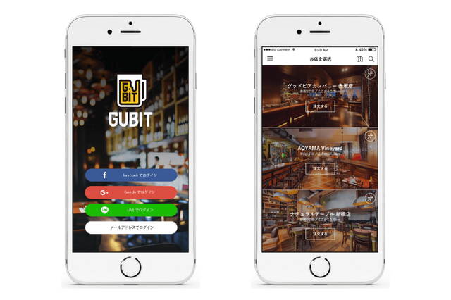 「GUBIT」は「毎日1杯、お疲れさまの1杯」をコンセプトに、お得にいつでもお酒を楽しめるサービス。iOSまたはAndroid対応のアプリより登録することで、GUBIT加盟店で、毎日乾杯ドリンクの提供を受けることができるようになります。飲みたいお酒の種類、ビールはブランド別に検索することも可能です。