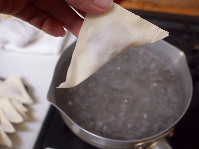 沸騰したお湯にワンタンを入れて3分ほど茹でる。