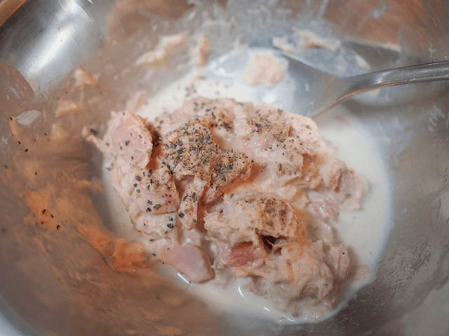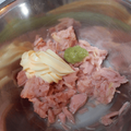 ツナ・マヨネーズ・わさびを入れて混ぜる。