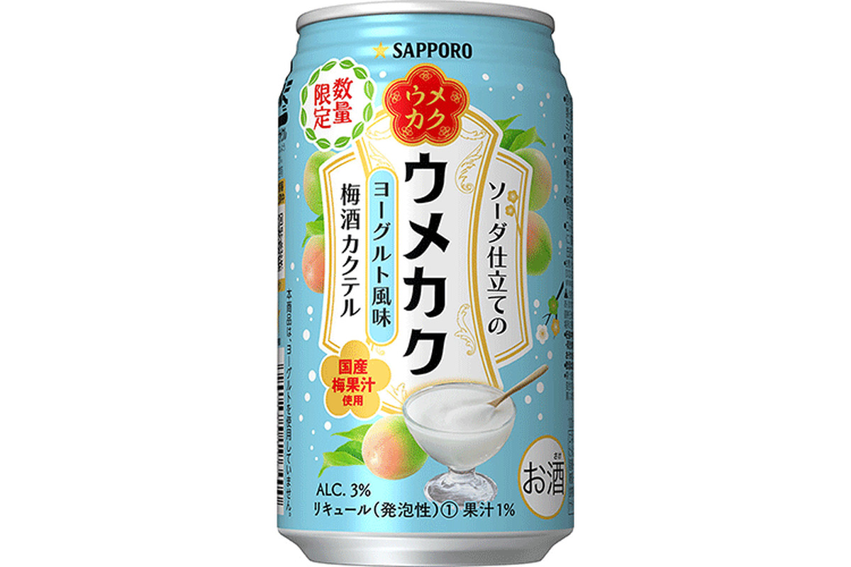 | 商品名 | サッポロ ウメカク ソーダ仕立ての梅酒カクテル ヨーグルト風味 |