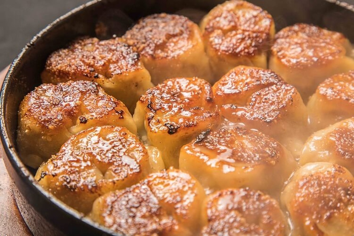 お店でひとつひとつ丁寧に仕込んでからの揚げ焼き仕上げなので、表面はパリッと、中はもちもちという夢の食感が実現しました。ひと口かじればジューシーな肉汁があふれ出します!