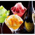 イギリス生まれのハーブドリンク「ハーブコーディアル」や各フレーバーに合うシロップで作った氷にフレッシュフルーツをのせ、最後に客の目の前で高級シャンパン「ドン・ペリニヨン」を贅沢にかけて仕上げられます。暑い夏にぴったりな、さっぱりした甘さのハーブコーディアルに、ドン・ペリニヨンの贅沢な香りが引き立ちます。味は3種類で、マスカット、マンゴー、ストロベリーと、見た目にも鮮やかなものばかり。価格は各2,400円(税別)です。
