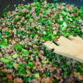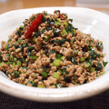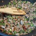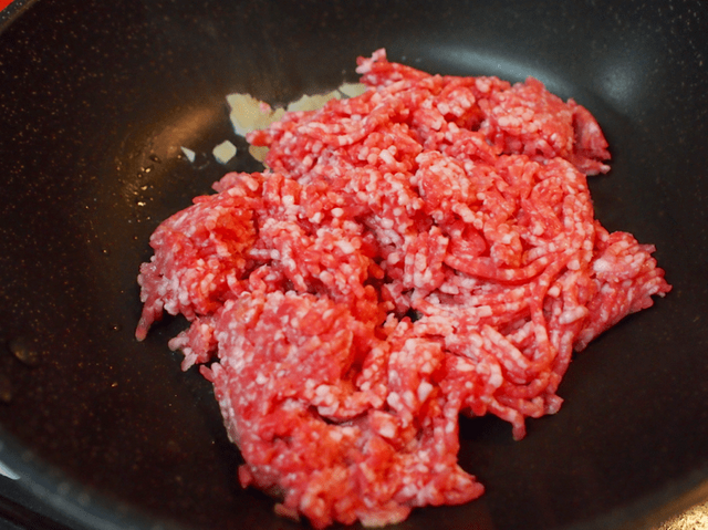 フライパンにひき肉を入れる。