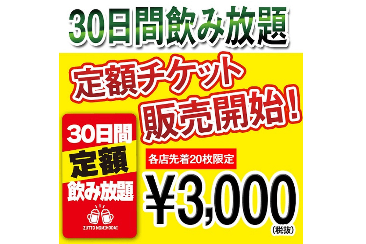 全国で飲食店を展開する株式会社ダイナミクスは、2018年8月13日(月)から運営の22店舗にて、1ヵ月3,000円(税抜)の『月額定額制飲み放題サービス』を始めました。