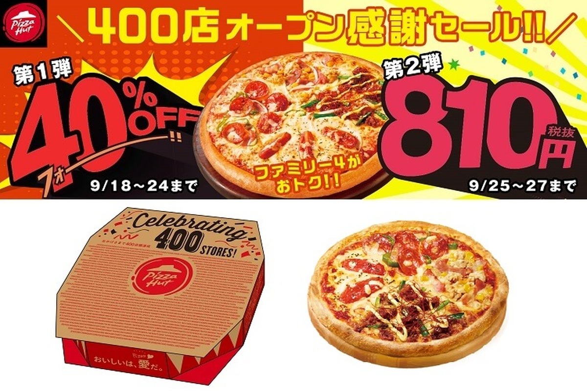 ピザハットは、2018年9月に日本国内での総店舗数が400店舗を達成!これを記念して、「400店舗達成記念キャンペーン」が2018年9月18日(火)からスタートしました。