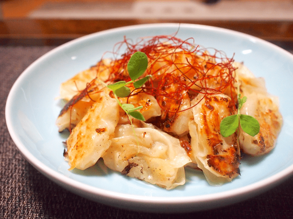 茹でられることの多いワンタンを、あえて焼きました。海老の食感とワンタンの皮の食感の相乗効果は堪りません!