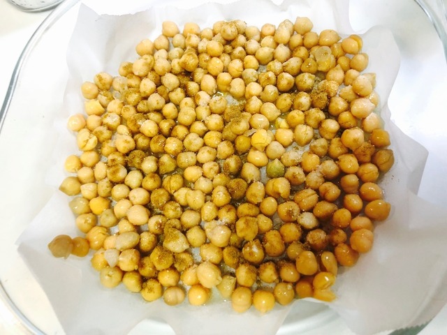 ひよこ豆を平らになるように広げ、★の調味料を振りかける。