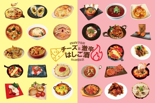 同イベントは"下北沢で行きつけのお店と呑み友達をみつけられる"という食べ呑み歩きイベント。参加飲食店は71店舗に上り、各店で"HOTな激辛料理と、とろける美味しさで幸せに包まれるチーズ料理"を"はしご酒"しながら堪能できるのだそう。