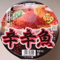 蓋を見た感じ、かなり真っ赤......。かつ、左端に「大変辛いラーメンです。辛いものが苦手な方はご注意ください。」との注意書きが・・・!