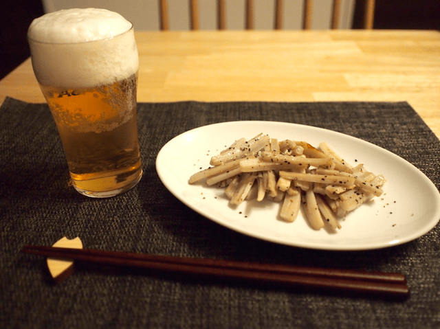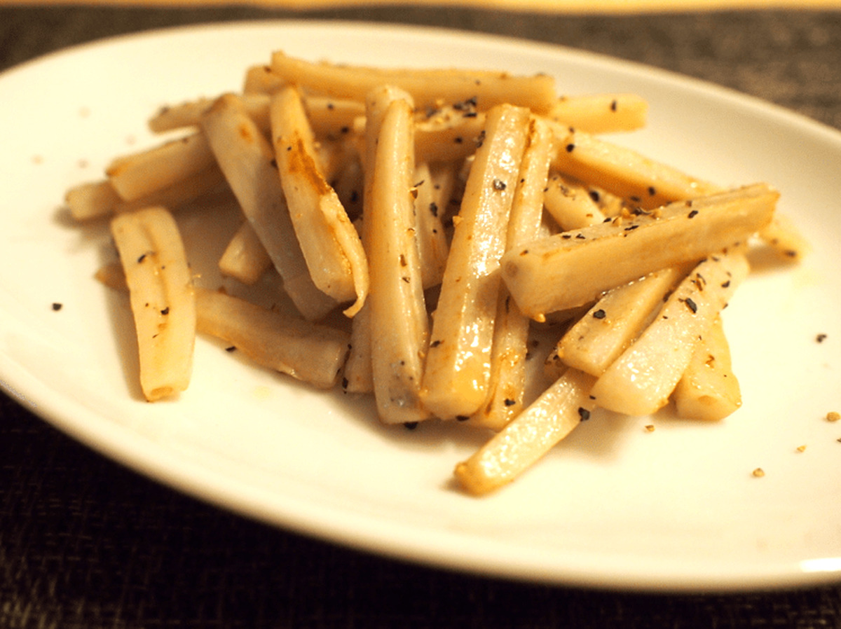 シャキシャキのレンコンに塩こしょうだけのシンプルな味付け。