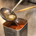これ、仕込み中の麻辣おでんの素です。だし汁に豆板醤、「麻辣ジャン」を入れてます。食べる前に、さらに”追い”でかけるお客さんも多いですね。