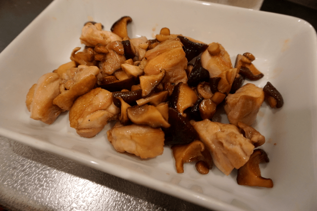鶏肉も、しいたけと同じくらいの大きさに切っておく。