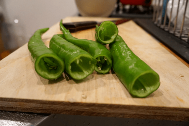肉汁と相まって、さらに甘さを増した万願寺がとっても美味しい。夏が終わる前に、ぜご賞味あれ!