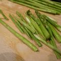 アスパラは下の方、スジが強いことがあるのでピーラーでむく。