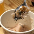 たらこバター味は、滑らかな食感。たらこの風味がいいね。好きな人多いかも。きざみのりとばっちり合うね。