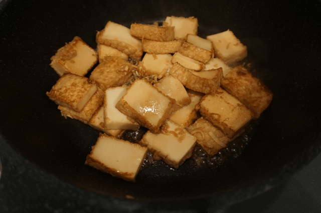 ②で漬けた厚揚げをフライパンで焼く。(漬けだれはボウルに残しておく。)