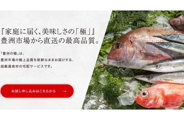 「豊洲の極」は、これまで一般家庭には流通していなかった豊洲の高品質食材を、仕入れたその日に届けるという宅配サービス。ベテラン仲卸が厳選した鮮魚・貝類・甲殻類・干物や青果・フルーツなどを、新鮮なまま楽しめるのだそう。