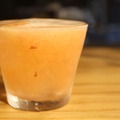 氷の入ったグラスに日本酒を注ぎ、オランジーナを加える。そこにミニトマトを加え、少し潰すようにしながらかき混ぜます。その後、塩・バジル・コショウをトッピングすれば完成。