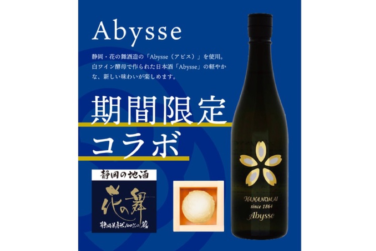 花の舞酒造の「Abysse」を使用しているのが特徴。白ワイン酵母で作られた日本酒「Abysse」の、軽やかな新しい味わいが楽しめるんどあそう。