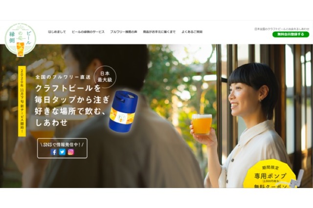 サイト上から全国のクラフトビールを探す・見つける・選ぶ・買うまでの流れをワンストップで行えるのが特徴。好みのクラフトビールを選択し注文すれば、専用樽(サイズ:3L、5L)に詰められた出来立ての生ビールが産地直送で届くとのだそう。