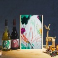 ラベルデザインを手がけるDunkwellによるアートの原画がそのままBOXの蓋になった、ホリデーギフトにぴったりのセットなのが特徴。ノンアルコールワイン「g」も、シルバーの箔押しラベルにクリアボトルで、スペシャルな装いになっているそう。
