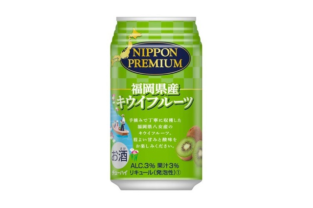 「NIPPON PREMIUM福岡県産キウイフルーツ」は、収穫量が全国2位を誇る福岡県産キウイフルーツの果汁を使用した、甘酸っぱい味わいのご当地チューハイです。