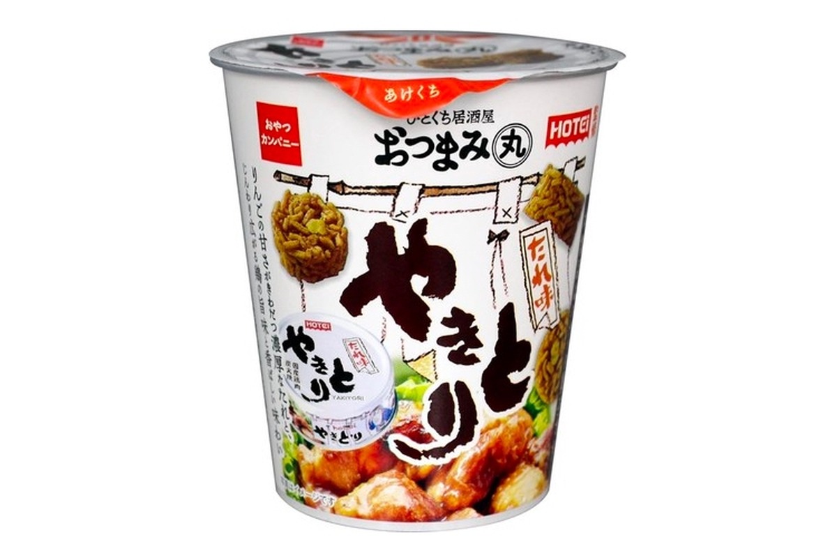 「ひとくち居酒屋おつまみ丸(ホテイ監修 やきとりたれ味)」は、ホテイフーズコーポレーションが販売する缶詰「やきとり(たれ味)」と、おやつカンパニーのコラボレーション商品。自宅で手軽に"おうち居酒屋"キブンを楽しめる一品です。
