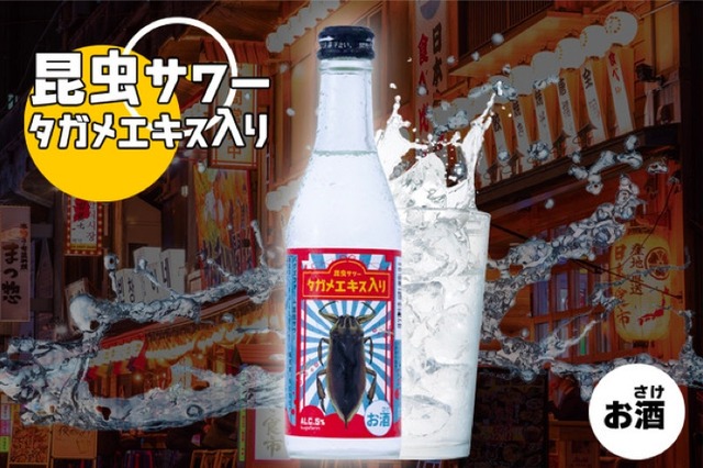 「バグズファーム 昆虫サワー」は、バグズファームで取り扱いのある食用昆虫の中でも、特に人気の高いタガメを使用した商品です。