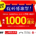 「乾杯感謝祭!」は、キャンペーン期間内に飲食店情報サイト「ぐるなび」で、同キャンペーンにエントリーされた方が対象の企画です。