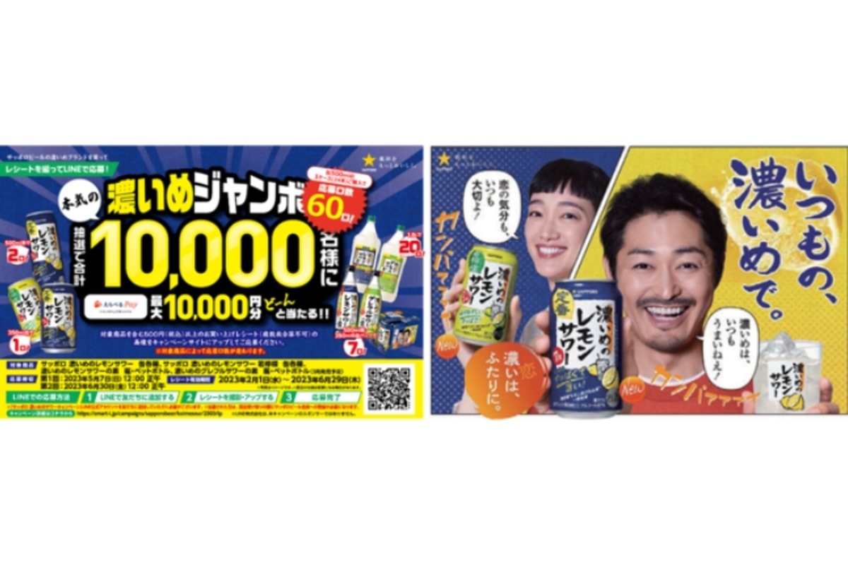 「本気の濃いめジャンボ」は、「サッポロ 濃いめのレモンサワー」のリニューアルに合わせて実施する特別企画。「選べるpay」最大10,000円分が抽選で合計10,000名に当たる期間限定キャンペーンになっています。