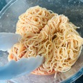 カッペリーニが茹で上がったら流水でよく冷やし、しっかり水を切って②に投入する。