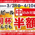 春の訪れを祝って開催される本キャンペーンは、期間中にアプリ会員向けに配信されるクーポンを提示すると、生ビール中ジョッキが通常価格528円(税込)の半額264円(税込)で飲めるというお得な企画です。
