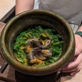 マグロ出汁で炊き上げるごはんにじっくりと香りを引き立てながら焼いた鮎を合わせる「鮎と万願寺唐辛子の土鍋」