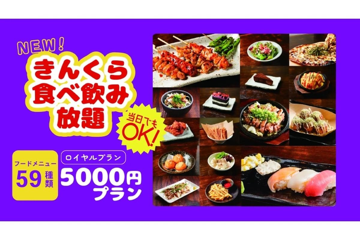同プランは、からあげやポテトをはじめとした同店定番人気のフードメニューに加えて、既存の「3000円プラン」「4000円プラン」では注文できなかったモンブラン、フォンダンショコラなど6種のケーキをデザートメニューに追加していることが特徴。また、串焼きや寿司、たこ焼きのバリエーションも全種オーダーできるなど、全59種のフードメニューを選べる贅沢なラインナップにしているのだそう。