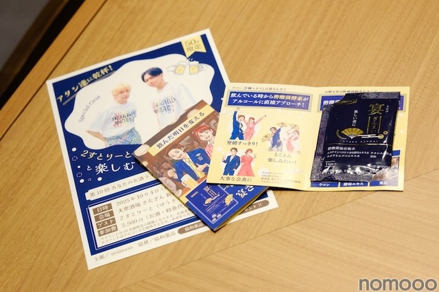 普段からお酒をたくさん飲んでいるという2すとりーとのお二人。今回はそんなお酒好きの方々が、より“宴を楽しむ”ためのアイテムとして、協和薬品の『宴ざんまい』が来場者全員に配布されました。