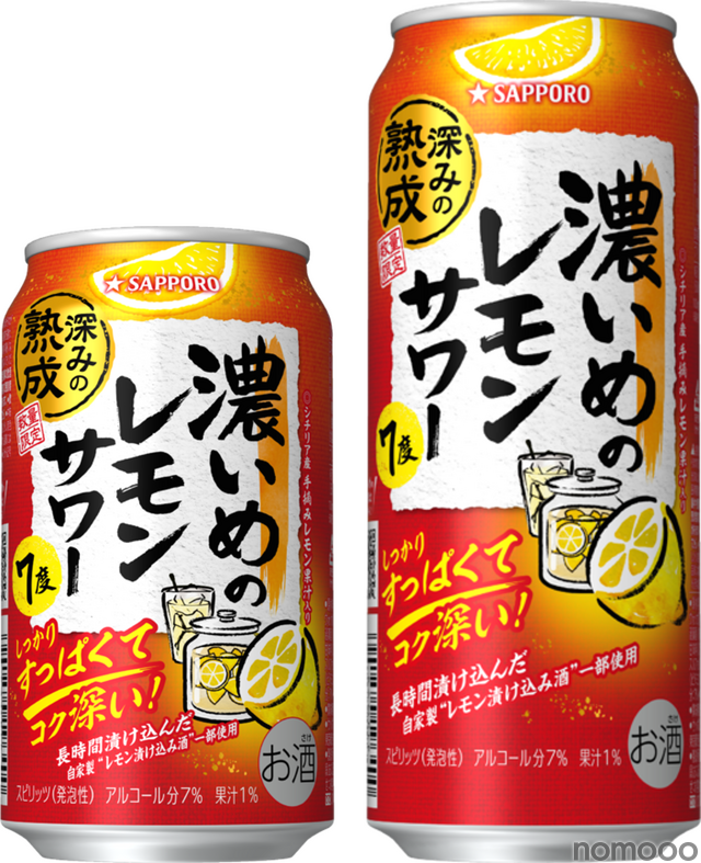 「サッポロ 濃いめのレモンサワー 深みの熟成」は、通常の6倍の時間をかけてじっくり漬け込んだレモン漬け込み酒に加え、今年は新たにレモンピューレを一部使用。ギュッと濃いレモン感はそのままに、コク深く余韻のある味わいを実現しました。アルコール分7%で飲みごたえもばっちり。レモンサワーの奥深さを堪能したい方はぜひ!