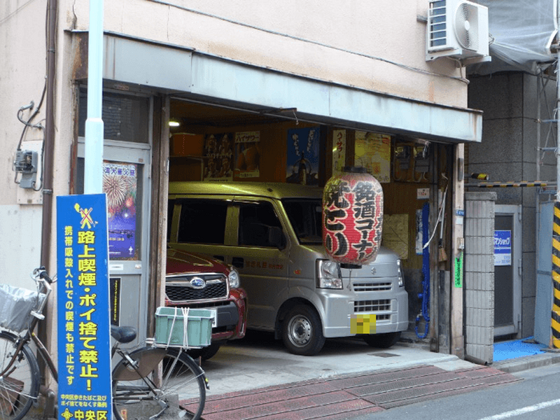 金融・証券や老舗の企業、IT関連企業もひしめく茅場町。 すなわち一線で活躍するビジネスパーソンの町であります。 そんなところに、立ち飲み屋。 あって当然、立ち飲み屋。 どうでしょう。この佇まい。 駐車場に赤ちょうちん。 …