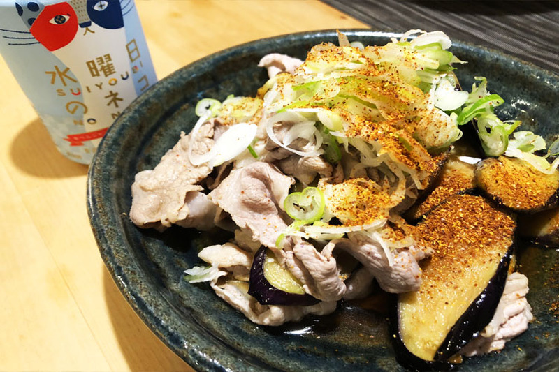 【レシピ】熱燗やビールのお供に!ごま油が香る「揚げ茄子と豚しゃぶの甘酢がけ」