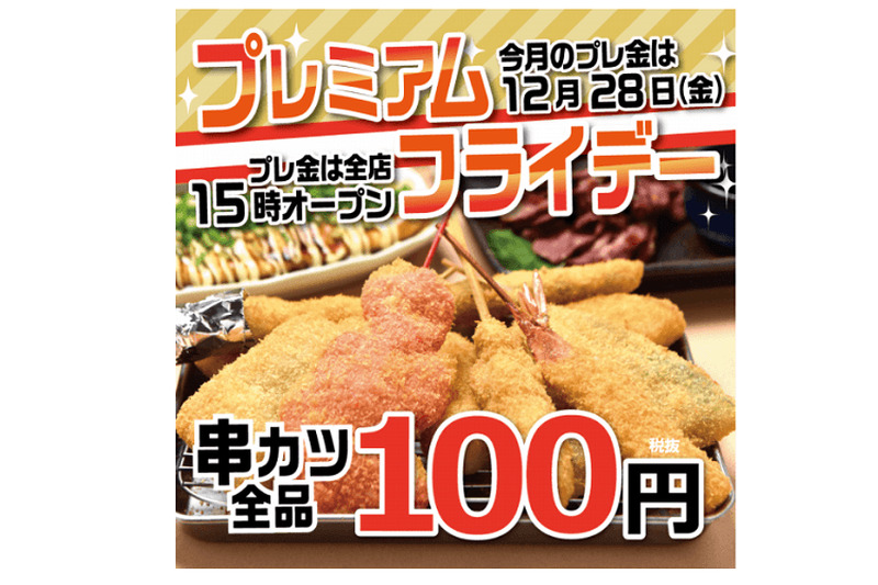 串カツ全品108円!12月28日(金)は串カツ田中で本年最後のプレミアムフライデーを満喫! 1枚目の写真・画像