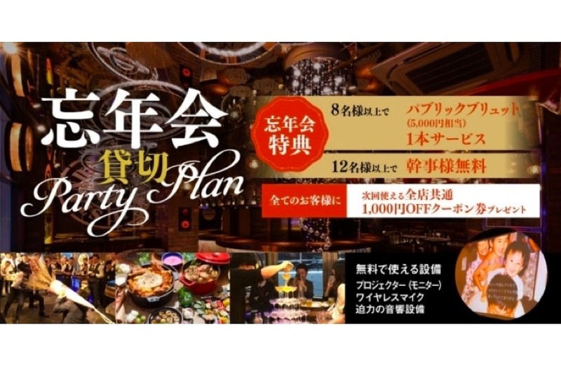パブスタで忘年会!?「パブリックスタンド 忘年会貸切りパーティープラン」登場 2枚目の写真・画像
